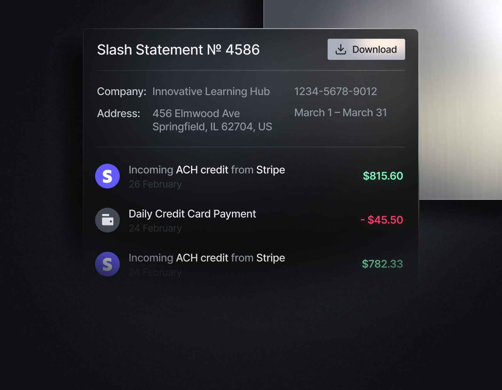 View and download PDF statements from all your entities in one place. Stay organized without switching between accounts.